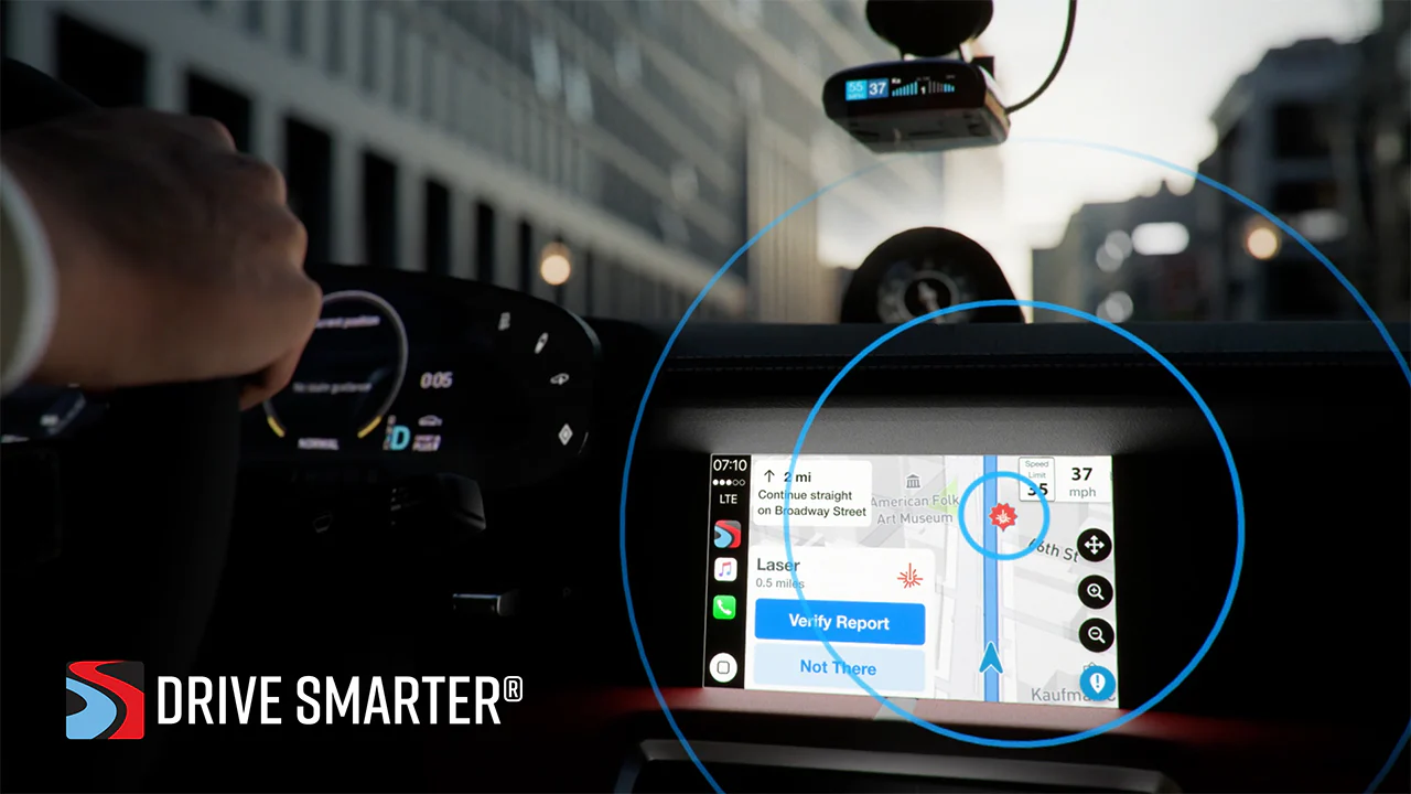 The Drive Smarter app connects your Escort radar detector to a network of other Escort users, giving you shared alerts and live updates. With Apple CarPlay and Android Auto integration on compatible systems, you can see important information on your in dash display while keeping your focus on the road.